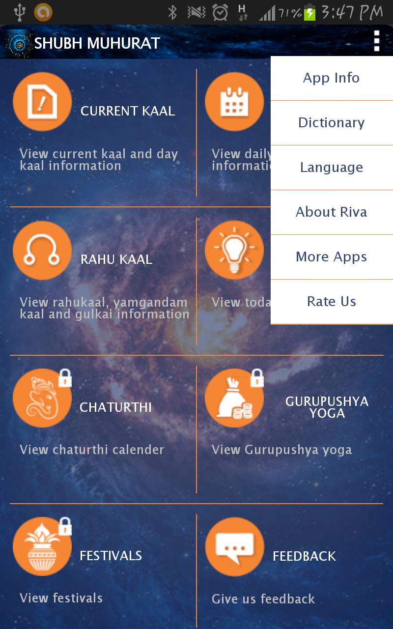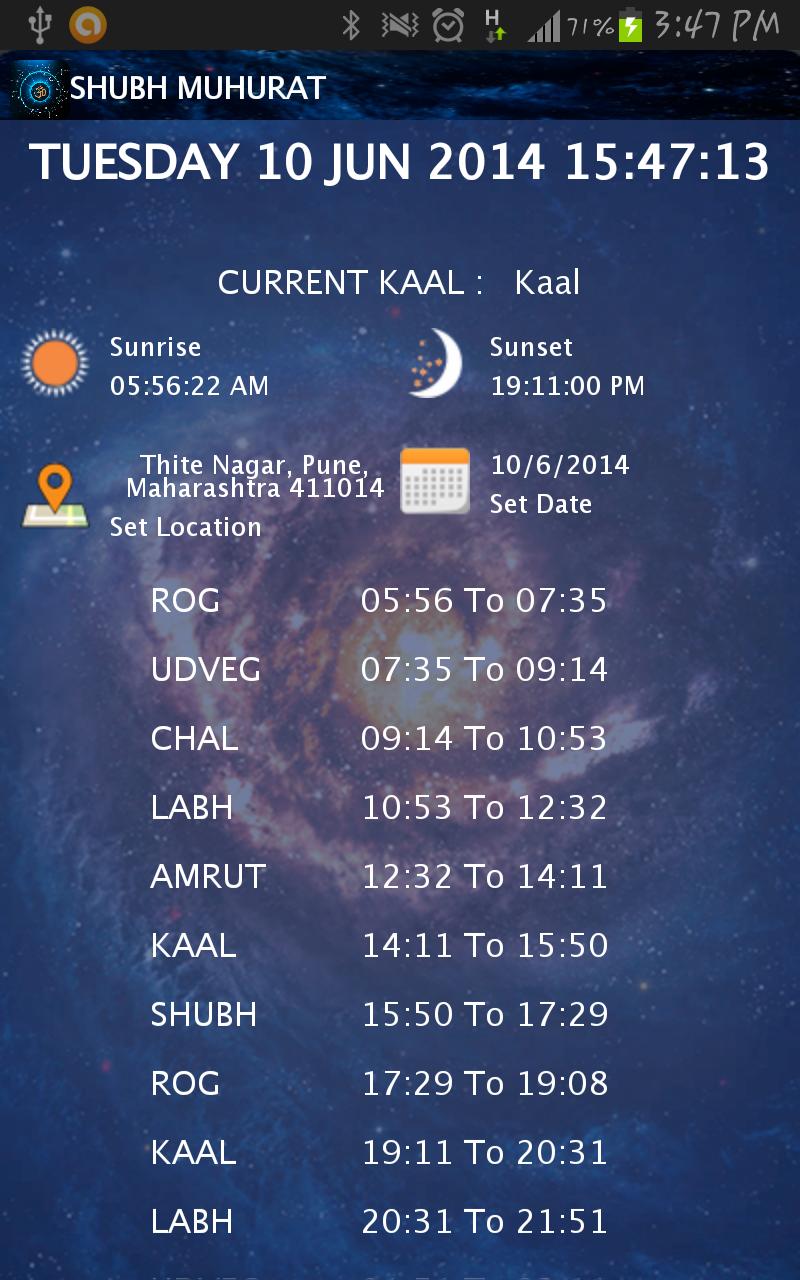 Shubh Muhurat是一個智能應用程序,可檢測用戶的當前位置和時區域,以自動在所選日期生成位置的choghadiya。