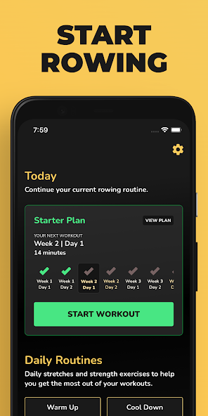 Start Rowing will guide you step by step, letting you know when to change rowing intensity and when to rest.每個計劃的設計旨在逐漸變得更具挑戰性,因此您的身體可以適應和增強耐力,同時最大程度地減少受傷的風險。它還可以與概念2划船機搭配使用。