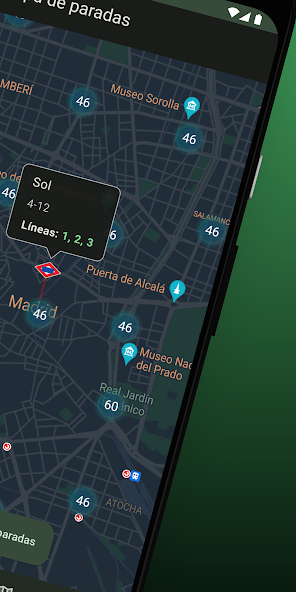 在任何停車的任何運輸中查詢超時,馬德里:室內巴士,EMT,地鐵和輕軌。