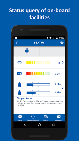 - 可以顯示和查詢車輛狀態和Truma /alde設備