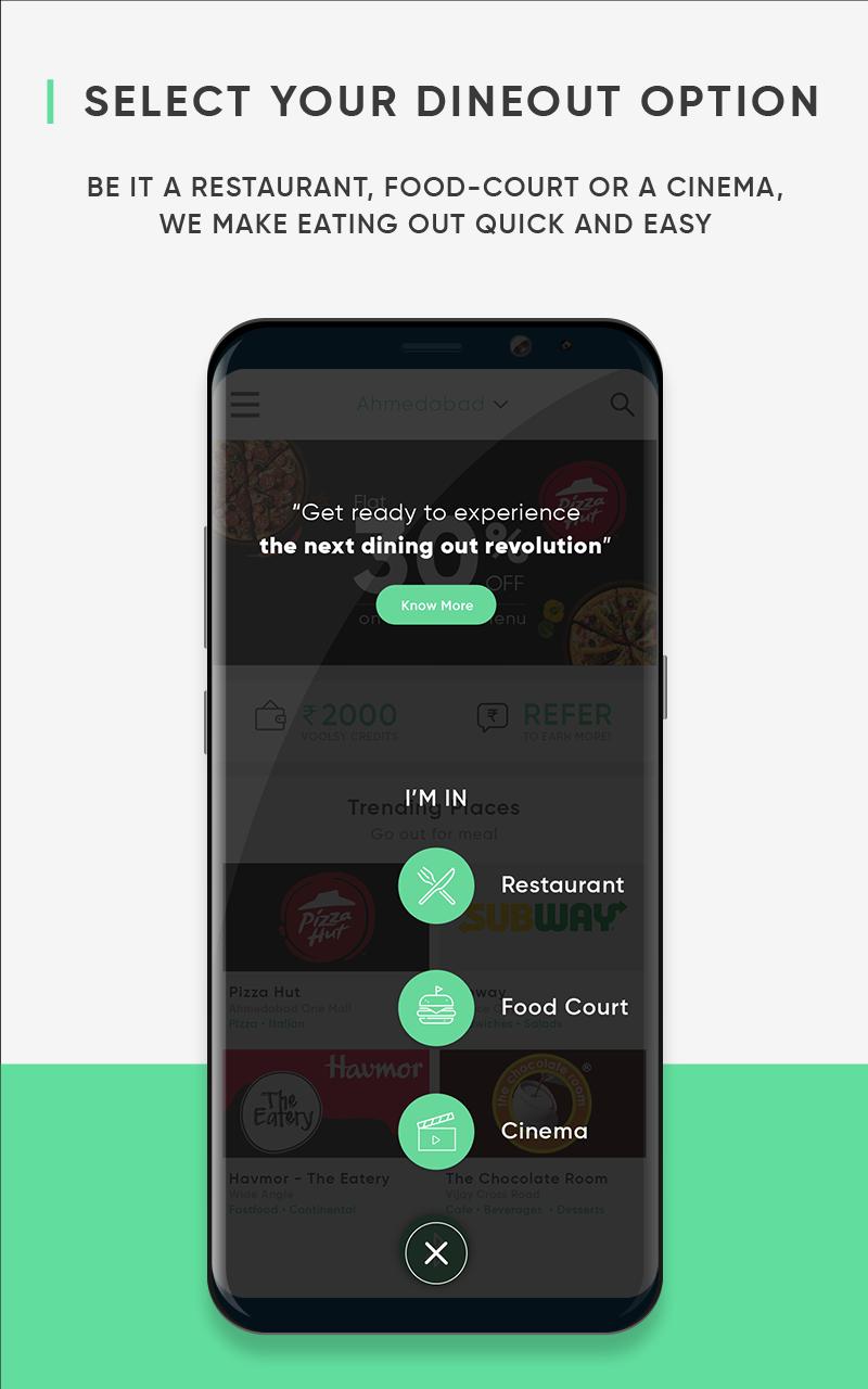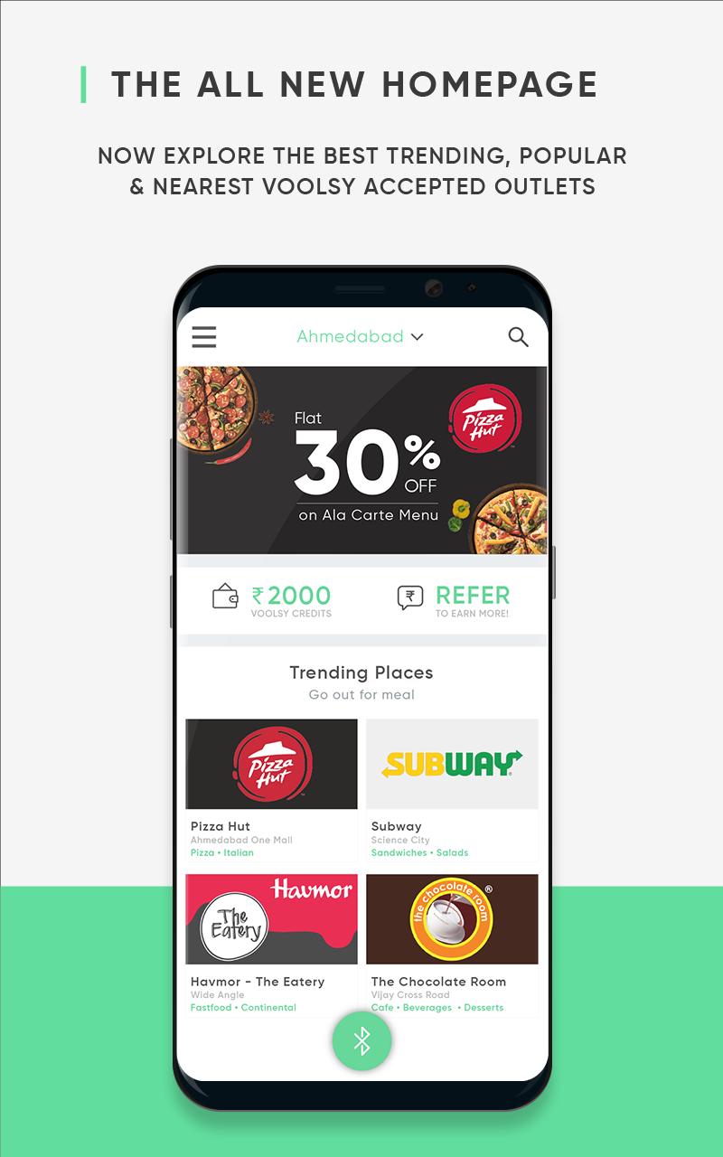在桌子/座椅上快速供應食物,而不會麻煩。 Voolsy與數千個店鋪以及班加羅爾,艾哈邁達巴德,孟買,納維尼孟買,浦那,海得拉巴,齋浦爾和拉傑科特的美食廣場和電影院合作,併計劃很快到達古爾岡,德里和欽奈。 Voolsy擁有一些最受歡迎的品牌,例如肉桂 - 酒店Suba Star,Asian Kitchen -Sheraton,Pizza Hut,Subway,Subway,Chocolate Room,Havmor,Havmor-餐館,Qwiches等4分。