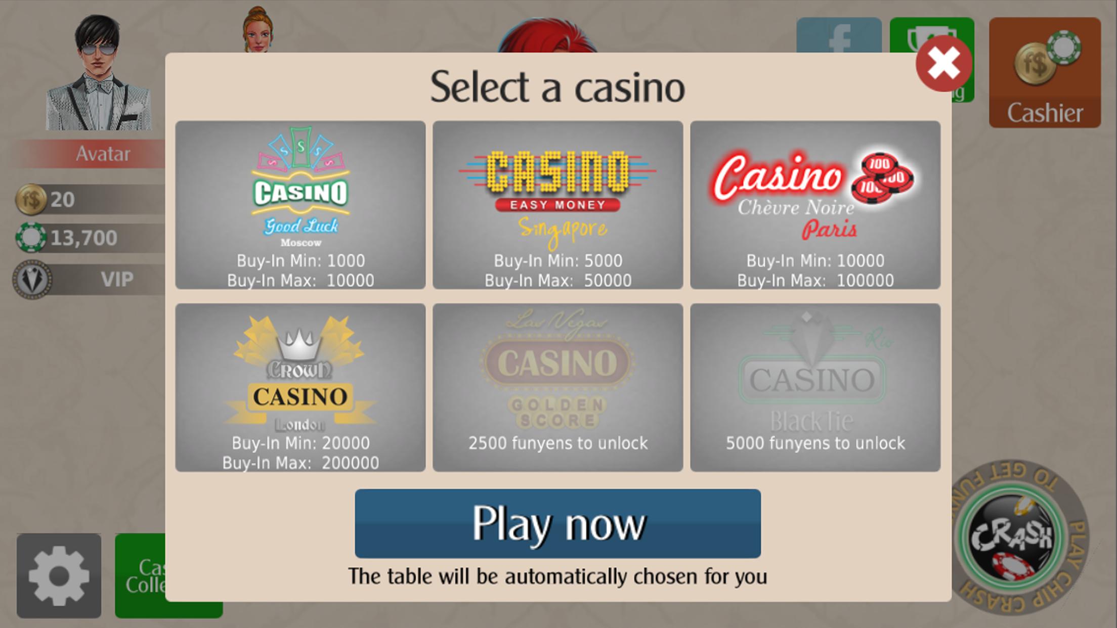 還有Chip Crash Minigame,讓您在比賽之間玩樂。您可以贏得遊戲貨幣的Funyens,可以隨時免費換成賭場芯片,免費!