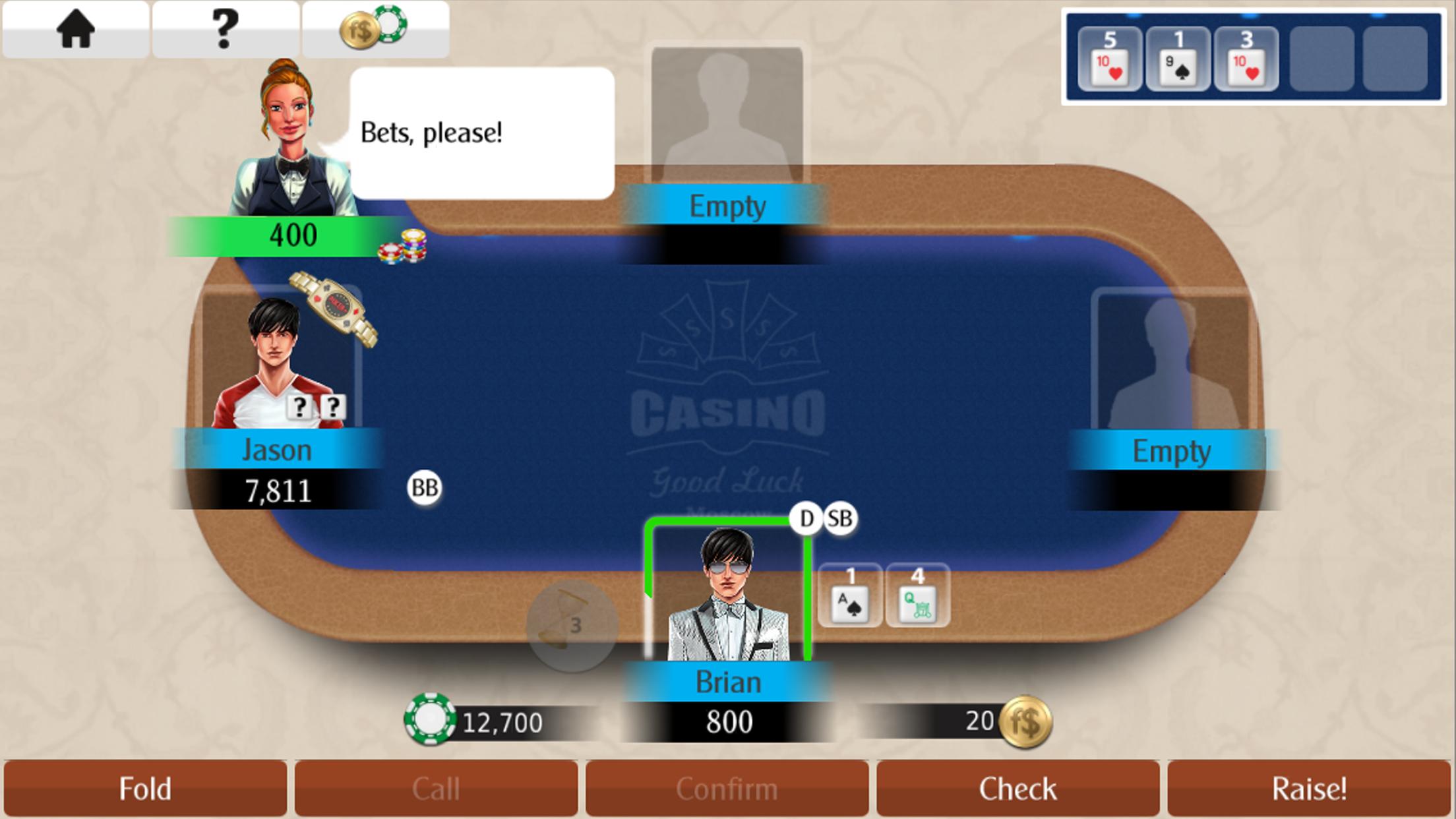 Black Tie Poker Plus是一種扮演德克薩斯州Hold'em的新的和不同的方式,其中策略和虛張聲勢是關鍵,並且每次賭注都會興奮。
