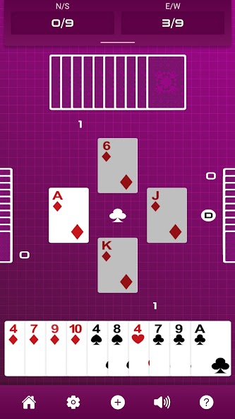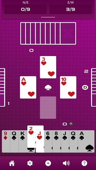 用於智能手機或平板電腦的Classic Whist遊戲。免費玩。跟踪您的統計數據。採取智能AIS。
