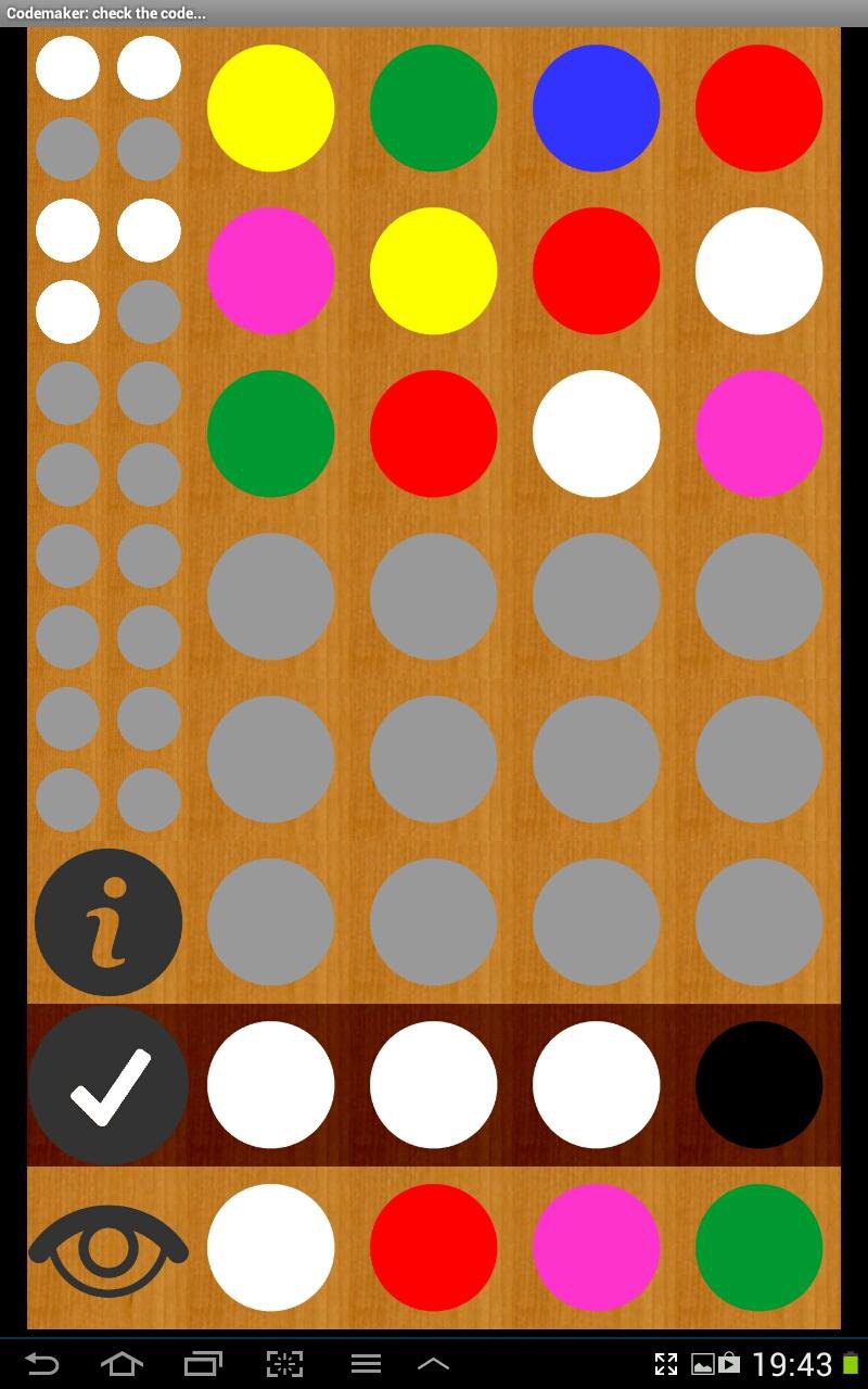 - 必須為猜測的每個代碼點放置一個黑點,該黑點的顏色和位置都是正確的。