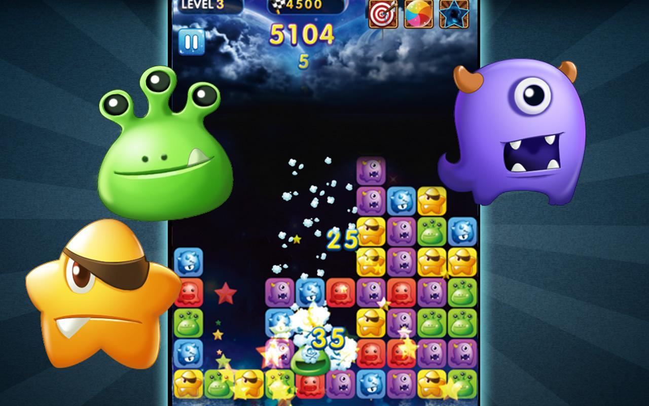如果您仍然演奏流行歌星,就可以住在巨大的岩石下,只需嘗試這個流行怪物。經典的休閒遊戲,具有全新的項目和額外的水平!